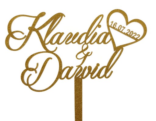 WYMIARY: Wymiar mieszczą się w przedziale 20x15cm+ kolce do wbicia. Przykładowe wymiary pokazane są na schemacie. Wymiary i układ mogą nieznacznie różnić się w zależności od imion, dopasowywane są tak, aby zachować proporcje toppera.