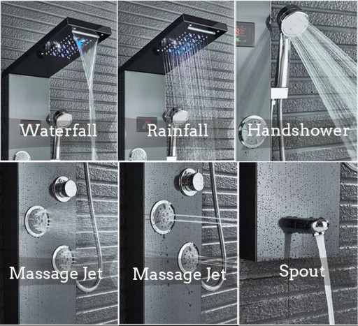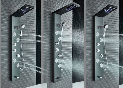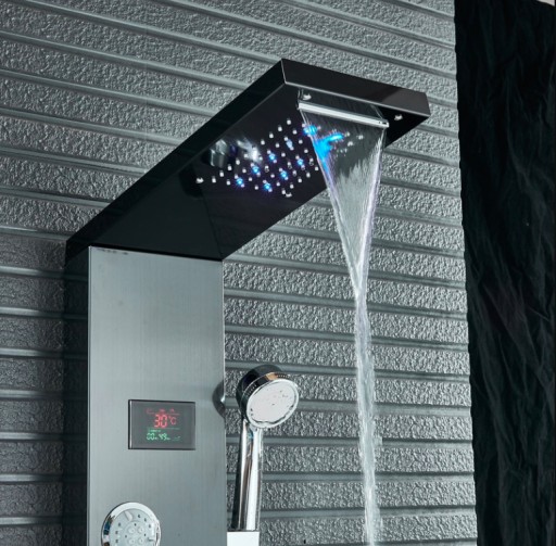 Piękny i nowoczesny wielofunkcyjny cyfrowy panel prysznicowy z wbudowanym oświetleniem LED. Do wykonania panelu prysznicowego zastosowano najwyższej klasy stal nierdzewną, mosiądz oraz najwyższej jakości tworzywo, które jest bardzo łatwe w utrzymaniu czystości. Panel z deszczownicą i hydromasażem jest gotowy do montażu zaraz po jego otrzymaniu. W zestawie znajduje się wszystko co konieczne jest do korzystania z panelu. Panel wyposażony został w system kurków, który umożliwia dokładne sterowanie zarówno siłą i temperaturą strumienia jak również sposobem, którym ma wypływać. Panel wygląda niezwykle ekskluzywnie i elegancko. Doskonale komponuje się z otoczeniem i wpływa na wygląd całej łazienki. Panel prysznicowy z deszczownicą zapewni ci wspaniałe doświadczenia przez wiele lat.