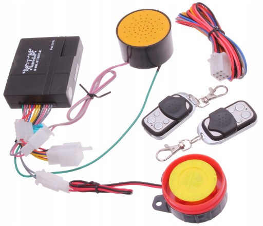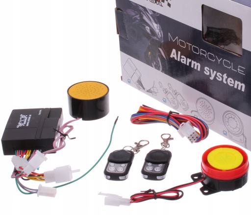 OPIS: ALARM MOTOCYKLOWY PRZYSTOSOWANY DO INSTALACJI 12V, PRAKTYCZNIE DO KAŻDEGO POJAZDU. STEROWANY PILOTEM (2x) (OBUDOWA METALOWO PLASTIKOWA). FUNKCJA ROZRUCHU I GASZENIA SILNIKA PILOTEM. CZUJNIK WSTRZĄSOWY - SYGNALIZACJA DŹWIĘKIEM I ŚWIATŁEM. KOMENDY I KOMUNIKATY GŁOSOWE: UAKTYWNIJ ALARM, ALARM AKTYWNY, ODEJDŹ OD POJAZDU, ALARM NIEAKTYWNY (WSZYSTKIE KOMENDY SĄ W JĘZYKU POLSKIM). WODOSZCZELNA I PYŁOSZCZELNA OBUDOWA. SYGNALIZACJA ŚWIETLNA I DŹWIĘKOWA ZAŁĄCZENIA I WYŁĄCZENIA. ZNAJDYWANIE POJAZDU. NISKIE ZUŻYCIE ENERGII.