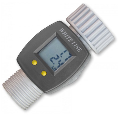 Urządzenie pozwala na pomiar przepływu wody do 999,9 litrów/ galonów.