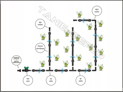 Przykład nawadniania z wykorzystaniem oferowanych produktów. Inne znajdziesz na innych naszych aukcjach w dziale OGRÓD na dole strony.