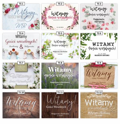 - Plakaty weselne "Powitanie" 25x60cm oraz 50x70cm