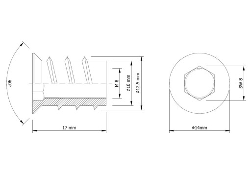 Skład złącza: Trzpień gwintowany M8 x 80 mm, Nakrętka M8, Mufa M8 x 17 mm, Podkładka Moon Line pod otwór 35 mm.