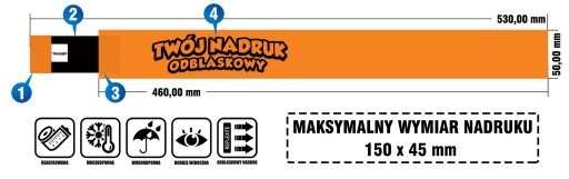 Opaska z własnym nadrukiem idealnie sprawdzi się podczas wieczorów kawalerskich, jako oznaczenie pracowników, służb mundurowych lub jako gadżet na imprezach plenerowych.