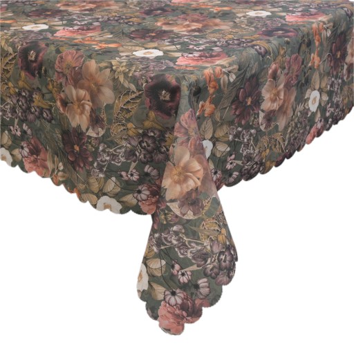 OBRUS 110x150 PLAMOODPORNY na stół do salonu ogrodu kuchni w kwiaty liście