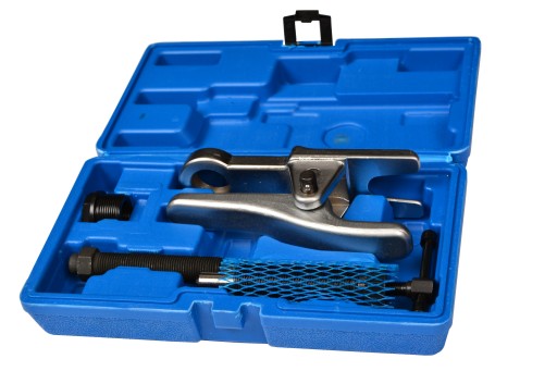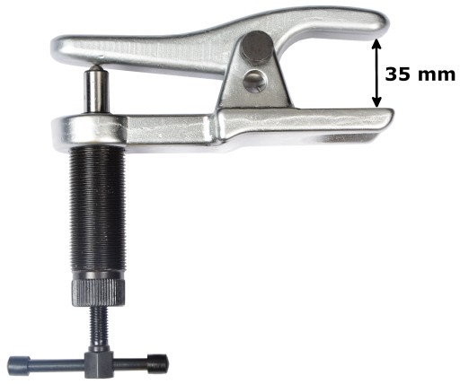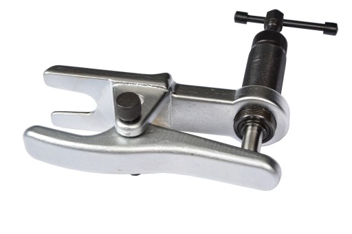 Ściągacz pracuje na zasadzie prasy śrubowej o drobnym gwincie, nie uszkadza drążków i stabilizatorów.