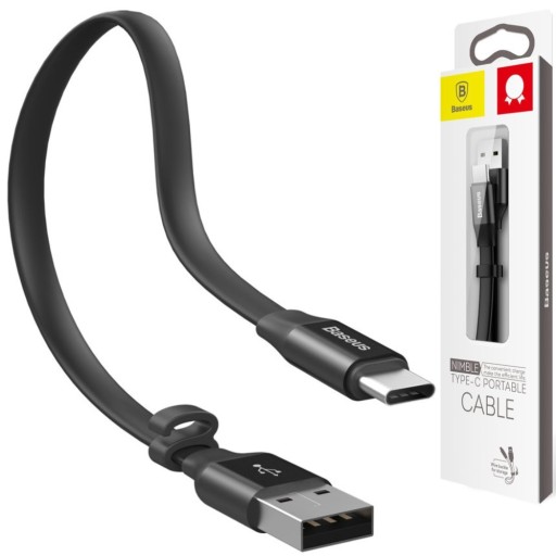 Baseus Nimble płaski kabel przewód USB / USB-C z uchwytem 2A 0,23M czarny