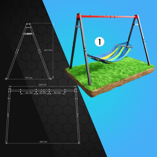 - Wysokiej jakości trwały i bezpieczny podwójny stelaż do huśtawki i bocianiego gniazda , wykonany z profili stalowych o przekroju 50x50x2