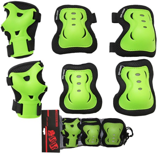 Zestaw ochraniaczy na łokcie i kolana oraz nadgarstek, wykonany z wysokiej jakości poliestru oraz amortyzującej pianki EVA i tworzywa PE.