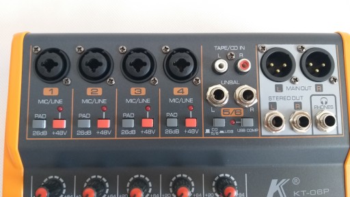 4 wejścia mikrofonowe/liniowe COMBO (XLR+TRS) + stereo (TRS)