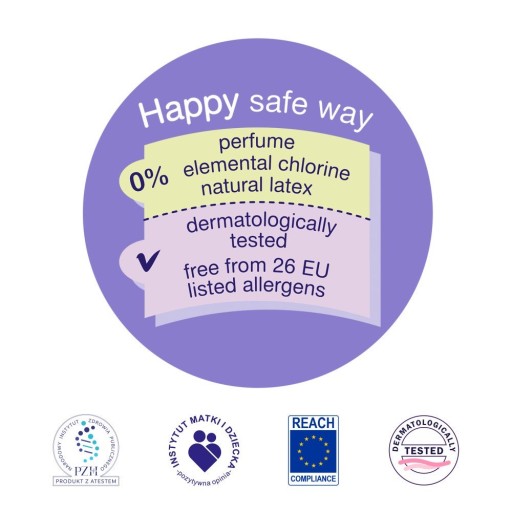 W pieluszkach Happy stosowane są materiały bezpieczne dla dzieci: