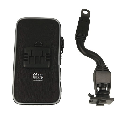 Praktyczny i solidny uchwyt zapinany na zamek błyskawiczny przeznaczony na telefon, nawigację lub inne urządzenie mobilne. Stabilnie mocowany do ramy roweru, kierownicy skutera albo lusterka.