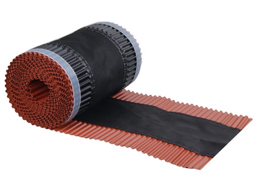 - specjalnie plisowane, aluminiowe elastyczne brzegi taśmy pozwalają na szczelne połączenie nawet z dachówkami wysoko profilowanymi i umożliwiają sprawne odprowadzanie wody z opadów atmosferycznych