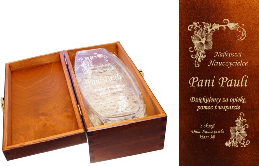 Wazon + skrzynka drewniana z grawerem kolor naturalne drewno lub brązowa lakierowana