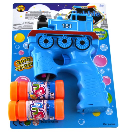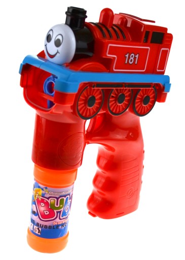 Bezawaryjny pistolet do puszczania baniek mydlanych wystarczy wkręcić dołączony w zestawie płyn ,naciskając na spust pistoletu uzyskamy magie setek baniek mydlanych a dodatkowo efekty świetlne oraz odgłosy prawdziwego pociągu