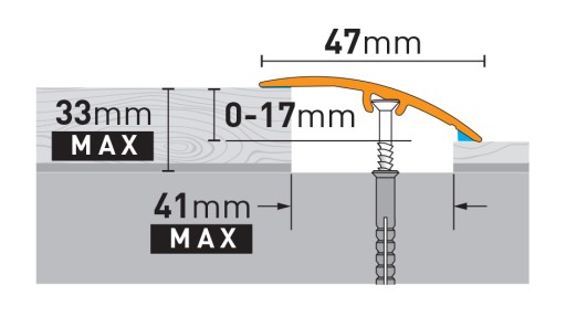 Listwa progowa aluminiowa firmy Arbiton służąca do niwelowania różnicy poziomów do 17 mm.