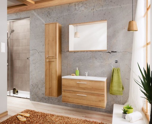• Zestaw mebli łazienkowych 80cm w odcieniu dębu riviera. Szafka posiada szuflady z systemem cichego zamykania.