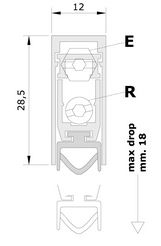 - OSADZONA W PROFILU ALUMINIOWYM DO WPUSZCZENIA WE FREZ OD DOŁU DRZWI