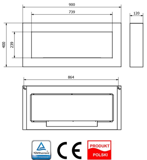 Wymiary: szer. 900mm / wys. 400mm / gł. 120mm;