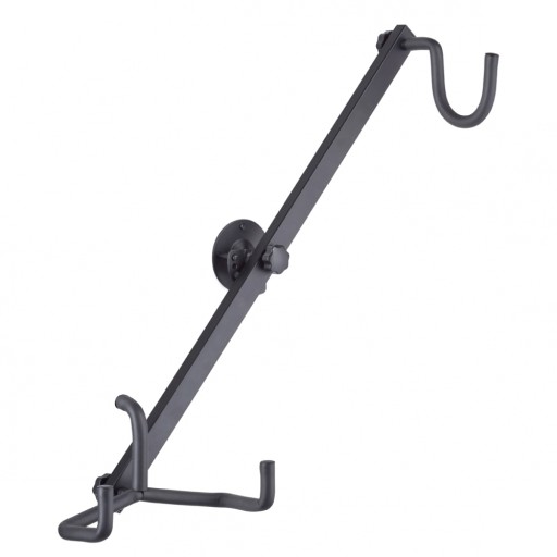 Wieszak gitarowy Rockstand RS20930B, do montażu na ścianie. Umożliwia zawieszenie gitary elektrycznej pod kątem, widełki zostały opatrzone warstwą ochronną z gumy. Długość ramy: 604 mm.