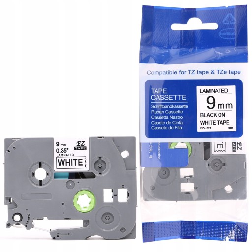 Taśma laminowana TZe-221 do drukarek Brother 9mm Biała