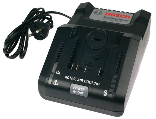 Wbudowany system chłodzenia akumulatora ACTIVE AIR COOLING automatycznie rozpoznaje temperaturę ładowanego akumulatora i jeśli przekracza 10°C to automatycznie uruchamia wbudowany wentylator, który poprzez specjalne otwory wentylacyjne, znajdujące się zarówno w ładowarce jak i w akumulatorze litowo-jonowym firmy BOSCH, doprowadza chłodne powietrze do akumulatora, tym samym system ten wpływa na znaczne skrócenia czasu ładowania, np. akumulator o dużej pojemności = 6,0Ah ładowany jest w czasie 48 minut