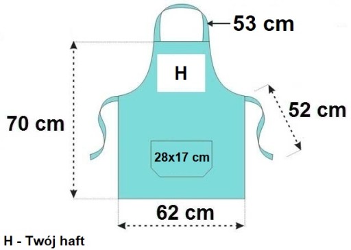 Ta aukcja i cena dotyczą 1 szt. fartucha z Twoim indywidualnym haftem w postaci:
