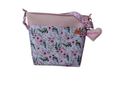 Torba jest wykonana ze szczególną starannością i dbałością o każdy szczegół.Oprócz praktycznego paska na ramie torba posiada również dwa zaczepy do zamocowania na pałąk wózka/spacerówki.