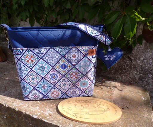 Torba posiada wymiary ok 43cm x 32 cm i dno szerokości 10 cm. Wnętrze torby uszyte jest z wigofilu, który sprawia ze jest ona praktyczna i łatwa w utrzymaniu czystości co przy maleństwach jest niezwykle ważne. Do tego wewnątrz znajdują się kieszonka na telefon, kieszonka na butelkę i dwie kieszenie na akcesoria dla niemowlaków. Od zewnątrz torba posiada również kieszonkę na akcesoria/telefon.