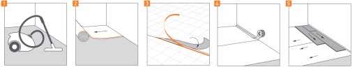 - usuń taśmę zabezpieczającą i połącz zakładką sąsiadujące wstęgi podkładu w celu uzyskania hydro izolacji oraz stabilnej powierzchni do montażu podłogi