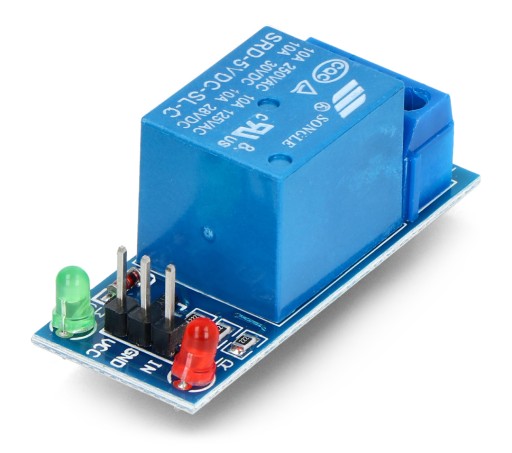 Moduł wyposażony w przekaźnik SRD-5VDC-SL-C z cewką zasilaną napięciem 5 V. Układ pozwala na sterowanie elementami wykonawczymi przy pomocy portów mikrokontrolera lub dowolnego zestawu uruchomieniowego. Pracuje z napięciem do 250 V.