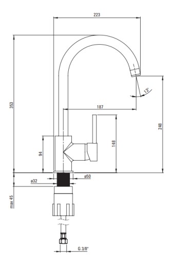 - Zasięg wylewki bateryjnej [mm]: 187
