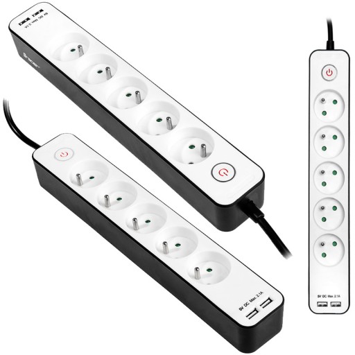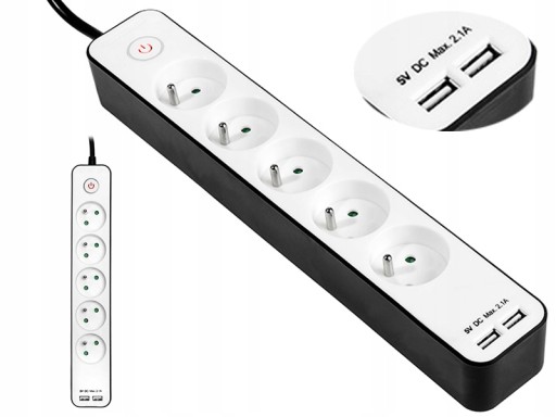 Listwa zasilająca z 2 portami USB 2A wyposażony w: