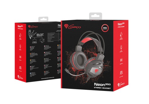 Kto chciałby godzinami siedzieć w niewygodnych słuchawkach? Dlatego Neon 350 zaprojektowano z myślą o wielogodzinnych rozgrywkach. Do tego nauszniki, jak i pałąk, są pokryte skórą, a estetyczne, czerwone podświetlenie LED, nadaje słuchawkom gamingowego designu.