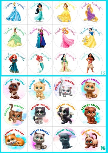 Naklejki ponacinany w kółeczka, średnica każdej z naklejek to ok 4,5 cm