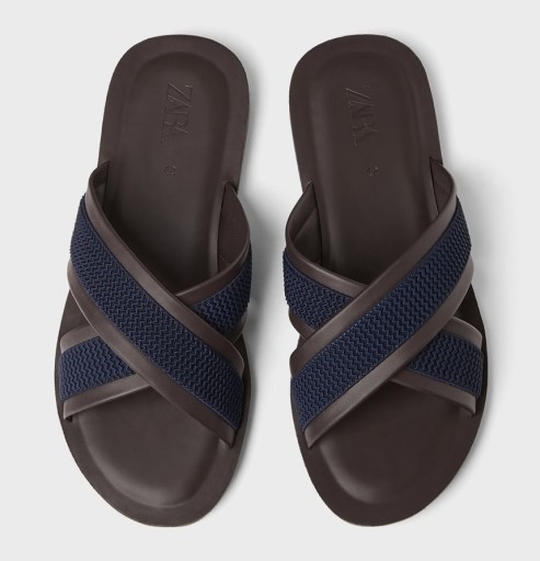 ZARA BRĄZOWO-GRANATOWE STYLOWE KLAPKI ZE SKRZYŻOWANYMI PASKAMI