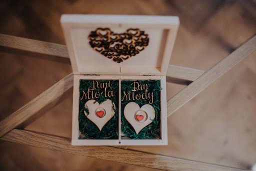 Wychodząc naprzeciw Państwa oczekiwaniom stworzyliśmy eleganckie, estetycznie wykonane pudełko na obrączki. Uroczy i praktyczny dodatek na dzień ślubu, a także pamiątka na lata.