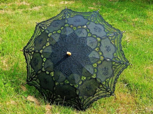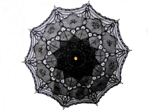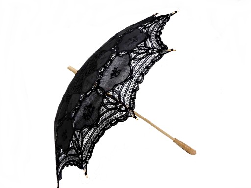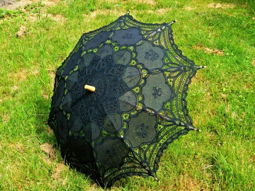 Piękna parasolka , wszystko widoczne na zdjęciach. Wspaniałe koronki tworzą niezwykłą dekorację i sprawiają ,że nie jest to tylko przedmiot chroniący przed słońcem. Parasol starego typu, to nie jest automat .Części drewniane to bambus, dzięki czemu, parasol jest lekki. To rzecz dla pięknych pań, dość unikalna na naszym rynku. W parametrach musiałem wpisać coś , bo inaczej nie można wystawić aukcji, ale ten parasol nie składa się na części .