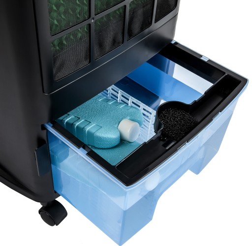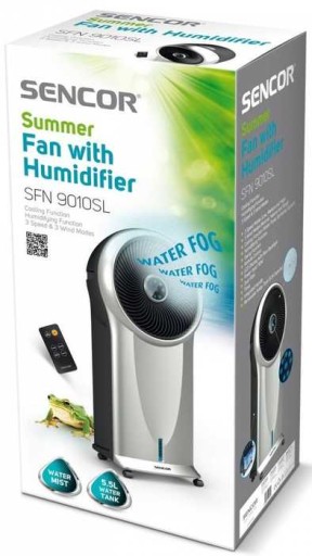 Wentylator SENCOR SFN 9011SL charakteryzuje się mocą 110 W i może wiać z wydajnością do 1248,6 m3 na godzinę, z maksymalną prędkością powietrza 3,37 metry/s. Wentylator posiada duży 5,5-litrowy zbiornik na wodę, filtr pyłowy z możliwością mycia oraz specjalny filtr wodny. W skład zestawu wchodzą również dwa wkłady chłodzące.