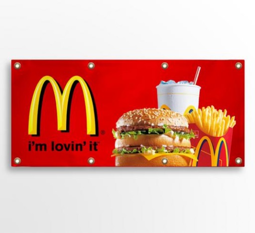 Baner z wytrzymałego materiału 510g, wzmacniany zgrzewem wzdłuż krawędzi, oczkowany co 50 cm .