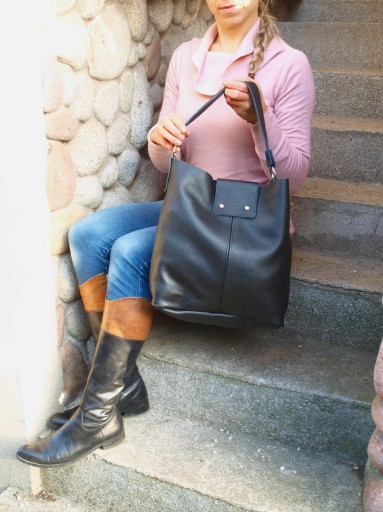 TOREBKA SKÓRZANA WOREK LISTONOSZKA SKÓRA CZARNA