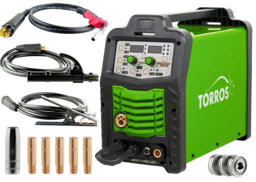 Spawarka Migomat Torros MIG200 Puls Synergia to profesjonalny inwertorowy półautomat spawalniczy przystosowany do spawania stali, stali nierdzewnej, aluminium i innych metali.