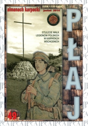 ISBN 978-83-85258-57-5. ISSN 1230-5898 (49) Spis treści Płaju 49Urszula Janicka-Krzywda (1949-2015) Wschodniokarpacki legionowy jubileusz Andrzej Wielocha: Legion Polski w MarmaroszuDariusz Dyląg: O rzekomo legionowych okopach pod SywuląLeszek Rymarowicz: Legiony Polskie i Ukraińscy Strzelcy Siczowi w KarpatachAndrzej Kaczorowski: Gwara legionowaTadeusz M. Trajdos: Ksiądz Józef Panaś kapelan Legionów PolskichJan Bujak: Bukowińczycy w Legionach Polskich 1914-1918Leszek Rymarowicz: W międzywojennym Jaworniku-Szybenem nad CzeremoszemRosa Bailly: Francuzka w CzarnohorzeAdam Bartosz: Śladem „Cieni zapomnianych przodków" Iwan Zełenczuk, Jarosław Zełenczuk: Wspomnienia o Annie Haradżuk „Hołubce"Jan A. Choroszy: Andrzej Vincenz (1922-2014) Szkic do portretuWojciech Krukar: Jeszcze o Wołosatem Książki