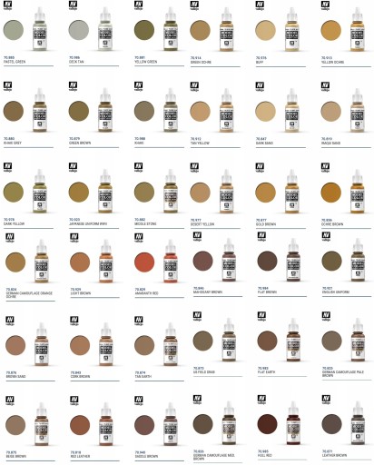 Matowe i nieprzezroczyste kolory akrylowe o najwyższym stężeniu pigmentu w formule na bazie wody, opracowane specjalnie do nakładania pędzlem. Gama kolorów palety " Model Color " jest bardzo obszerna i obejmuje podstawowe odcienie, a także wiele referencji do wykorzystania na figurach historycznych, a także specyficzne kolory stosowane do wszystkich typów pojazdów, samolotów i modeli wojskowych.. Zaleca się stosowanie kolorów na powierzchni, która została wcześniej zagruntowana; kolory szybko wysychają i tworzą samopoziomującą, jednorodną warstwę farby, równie idealną do dużych powierzchni, jak i najbardziej miniaturowych detali modelu. Model Color zachowuje się wyjątkowo dobrze na wszystkich powierzchniach, z nadzwyczajną przyczepnością do żywicy, tworzyw sztucznych, stali i białego metalu. Model Color jest niepalny i nie zawiera rozpuszczalników. .