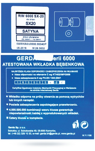 - Opakowanie wkładki Gerda RIM6000 zabezpieczone jest plombami bezpieczeństwa.
