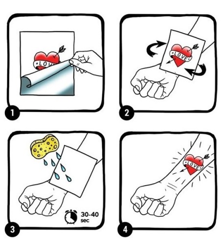 - Przyłóż tatuaż grafiką do skóry i dokładnie przyciśnij.