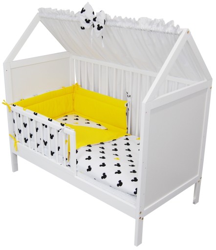 Skład kompletu: poduszka, kołderka, poszewka na kołderkę i poduszkę, ochraniacz na szczebelki oraz baldachim