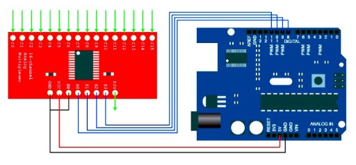 - zastosowany układ: CD74HC4067 (lub odpowiednik)