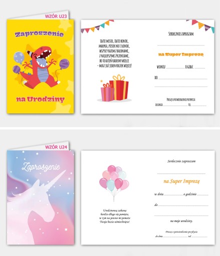 - Możliwy jest mix zaproszeń np. U1 - 5 sztuk, U3 - 20 sztuk, itd...