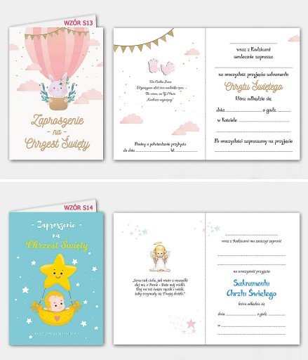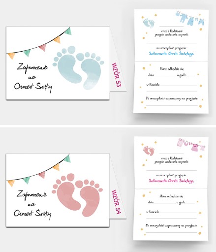 - Możliwy jest mix zaproszeń np. S1 - 10 sztuk, S3 - 20 sztuk